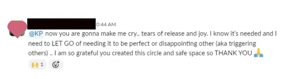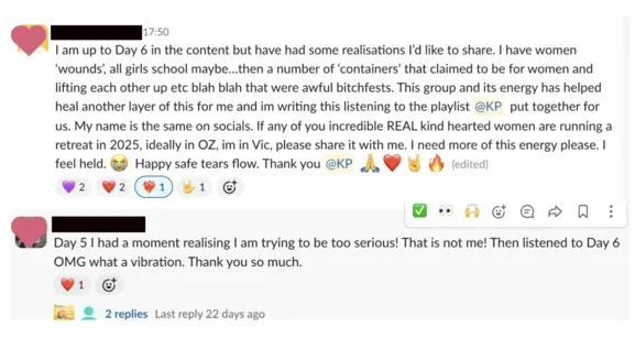 "I felt so heard + less alone on my 'good girl' sticky notes.. it felt so good to release some of that shit. I would describe SEEN as the most nourishing and value for money program - it delivered what was offered. I really did feel I could be myself and that is a rare thing these days. Before SEEN, I felt hesitant to be seen and heard... NOW, I feel more confident on being seen and heard and I love that I can revisit all the seen content so I can go back and do it again at a slower pace and really feel into it. So glad I joined and thank you so much Kylie, love your work and your passion xxx"