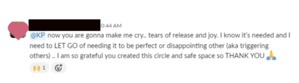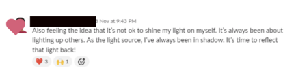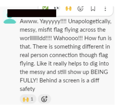 I feel more able to be SEEN than ever before - thank you :)"